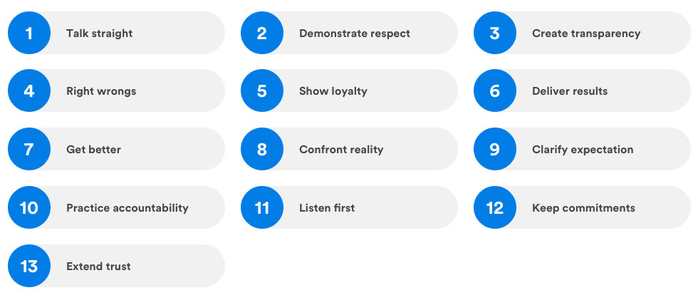You have to give trust to get trust.But how do you give or show trust? According to SHRM, the following are 13 common behaviors that build and maintain trust. Adopting these behaviors is akin to making deposits into a “trust account” with individual employees, teams, and the company as a whole. SHRM’s lisy is a way for you to tangibly display and offer trust to your employees.