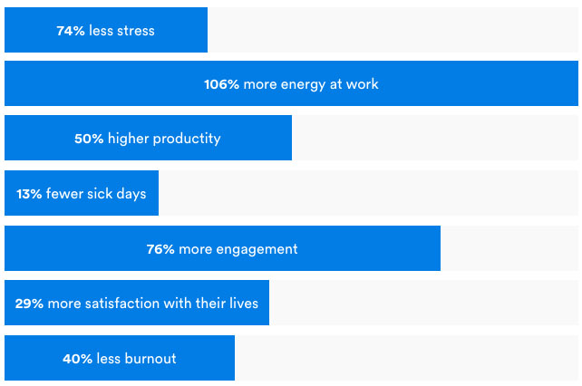 - Experienced 40% less burnout from their work